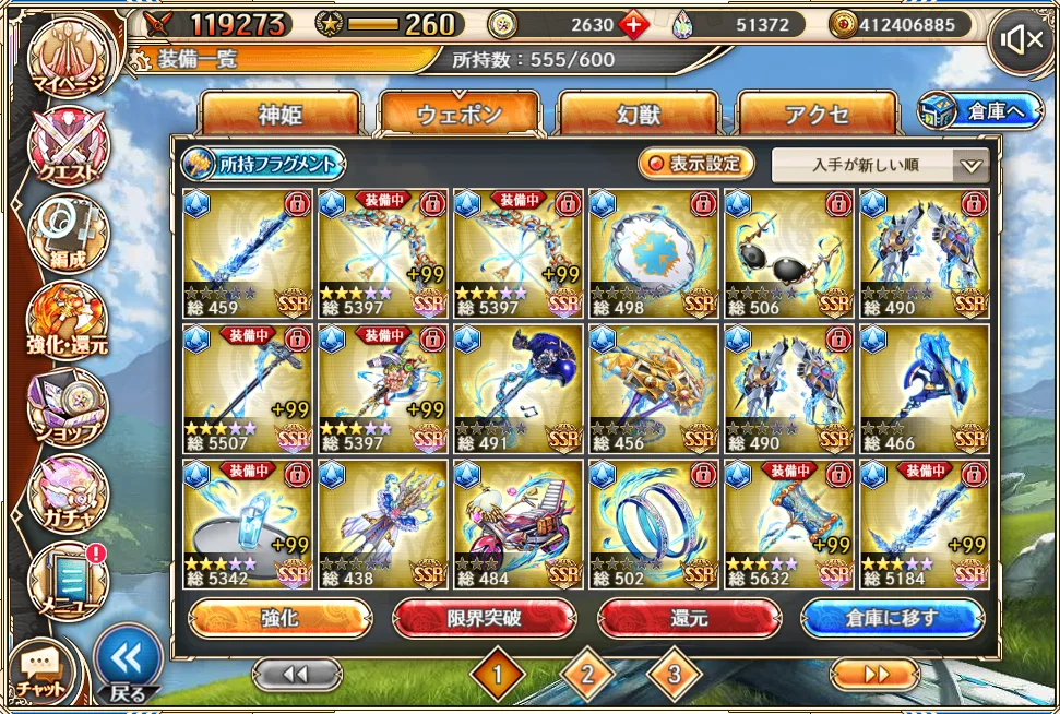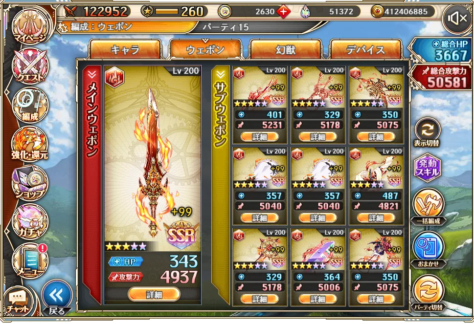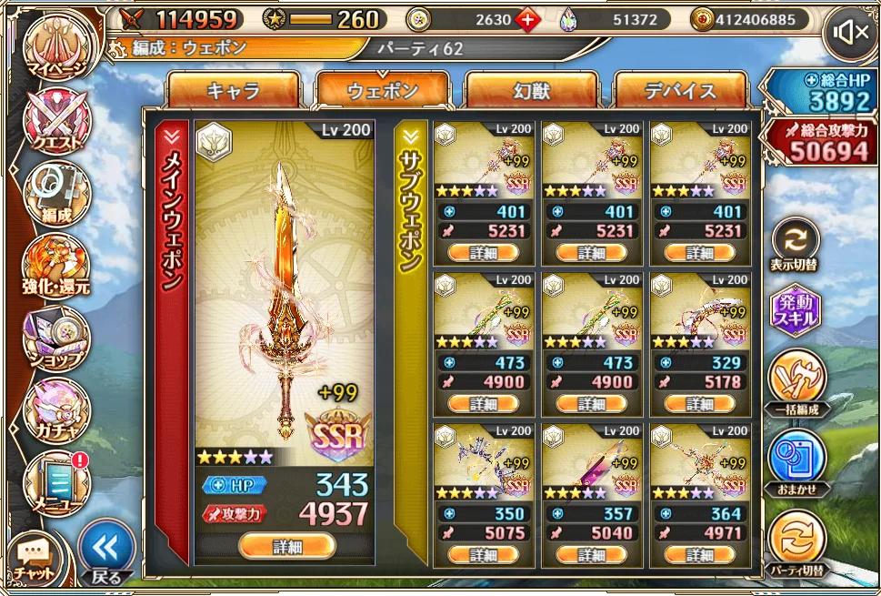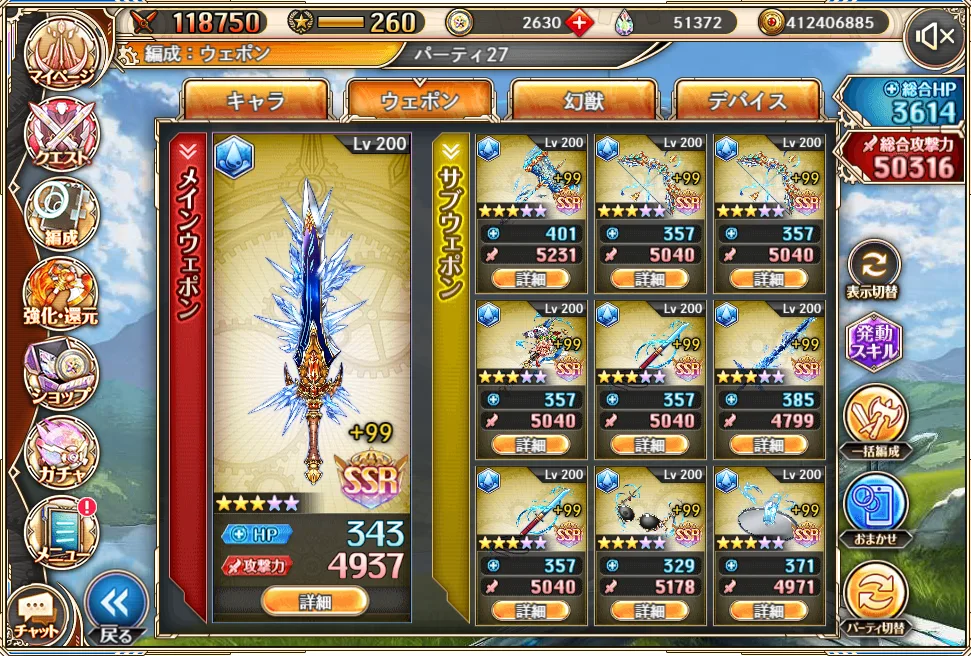 一応ウエポン一つ完凸できる15万オーブは集められたのですが、何を強化しようか迷ってます。