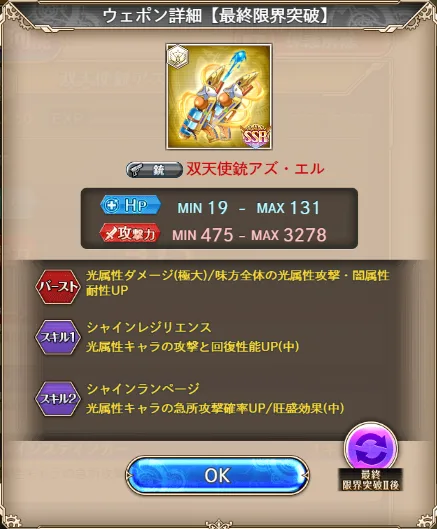 こちらはアデーレ武器です。ヘクトル砲編成を強化するにはいいかも。シェオル武器と交換候補ですね。