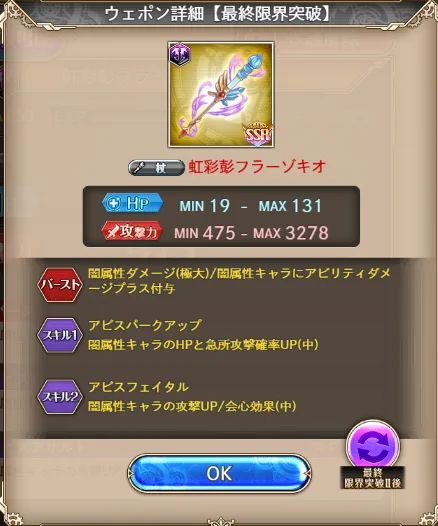 あとイシュタル武器は会心が過剰なので、旺壮大武器と交換しても良いでしょう。