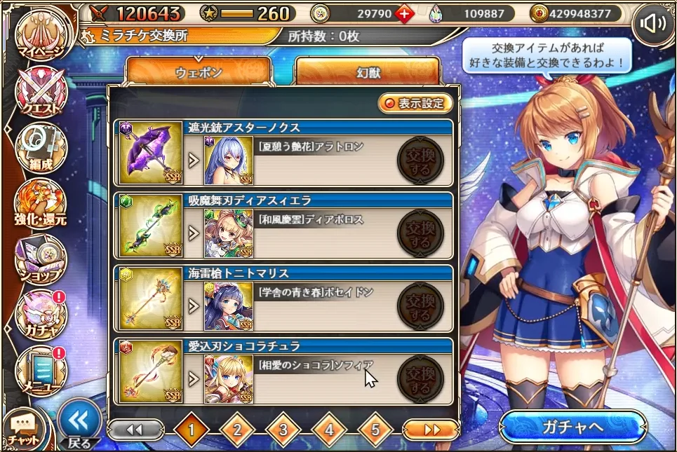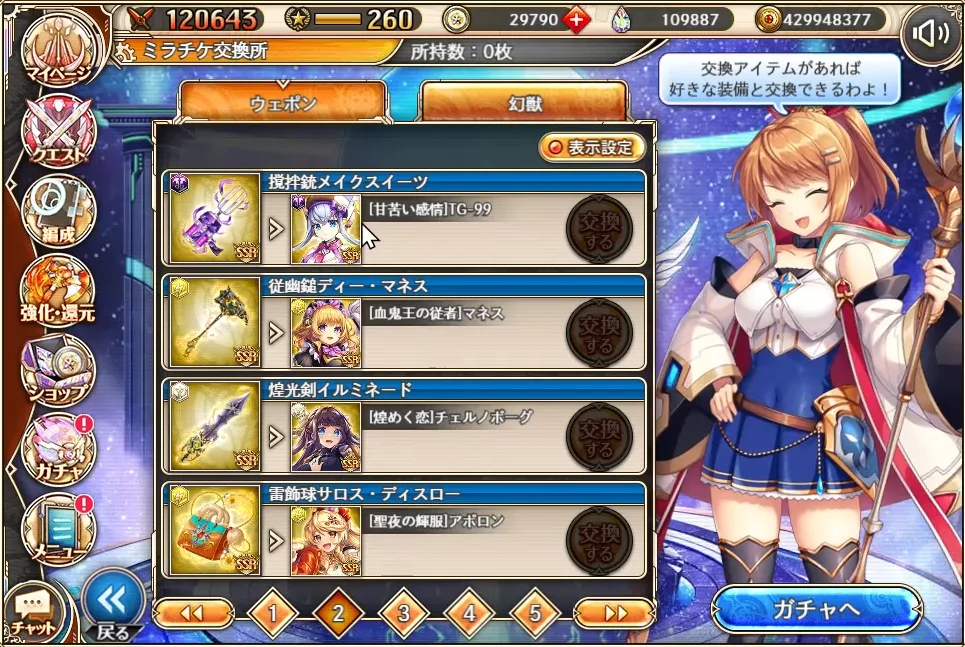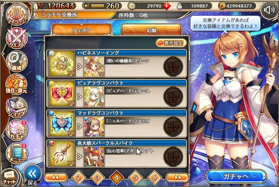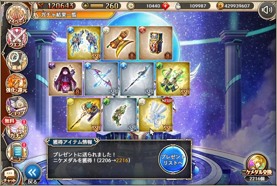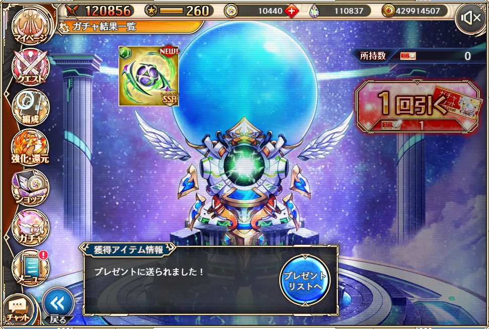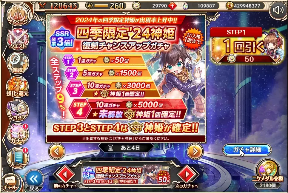 SSRステップガチャが今まではピンポイントで狙えてたものが少し改悪されて、未解放確定で古い神姫も出る可能性が発生してどうしたものかと二の足を踏んでいたのですが、まあ古い神姫でも集めておこう!そうすれば無料ルーレットの未解放チケで少しは有利になるはず!