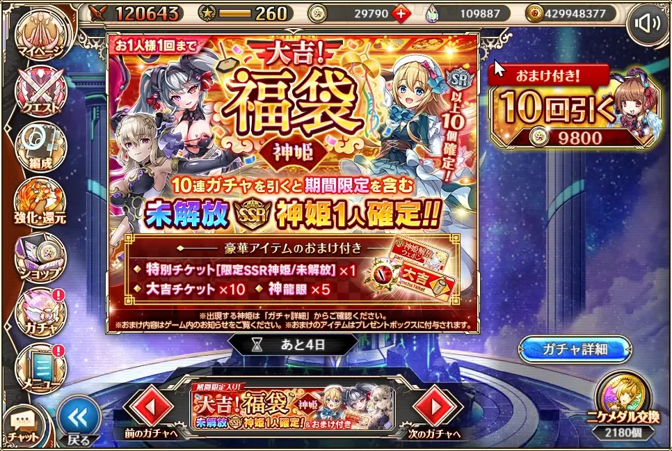 今回はこの正月福袋とチャンスアップガチャ(おそらく以前のSSRステップガチャの派生形)