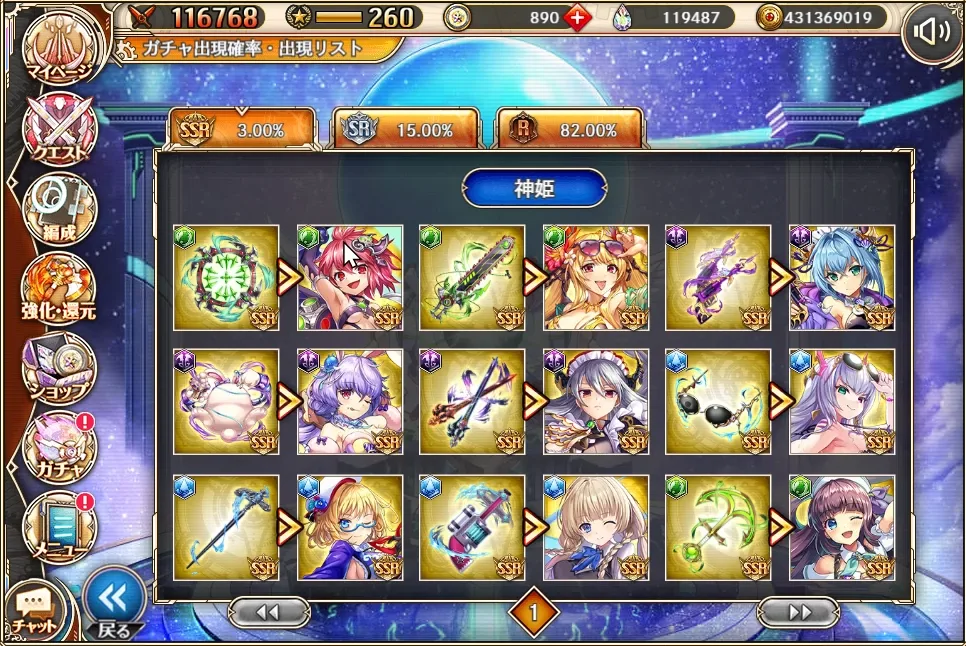 水シャマシュが未解放なのですが、これをピンポイントで狙える気がしないので、こちらのガチャはパス!