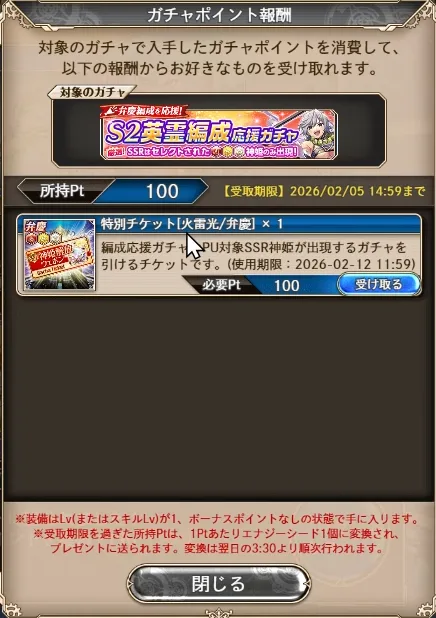 100連で交換できるチケットを入手!