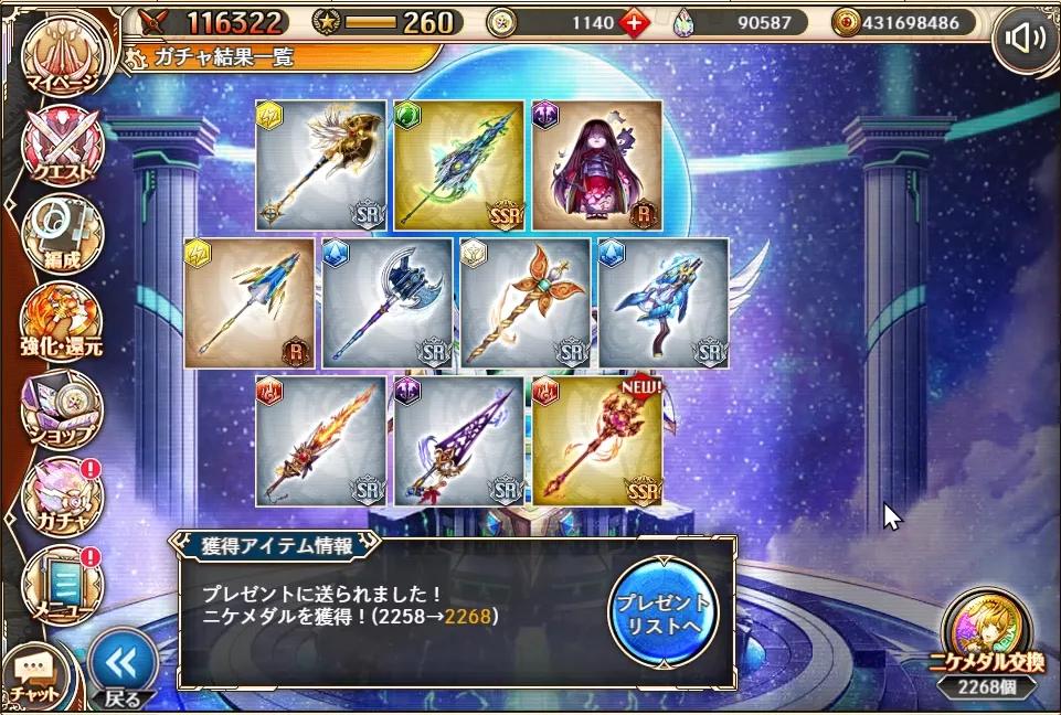 SSRは最低保証の1個のみかあ。若干渋いがまあとりあえず次で未解放いただきましょう!