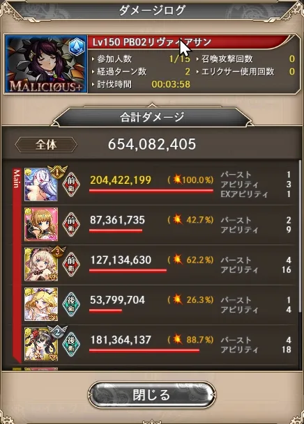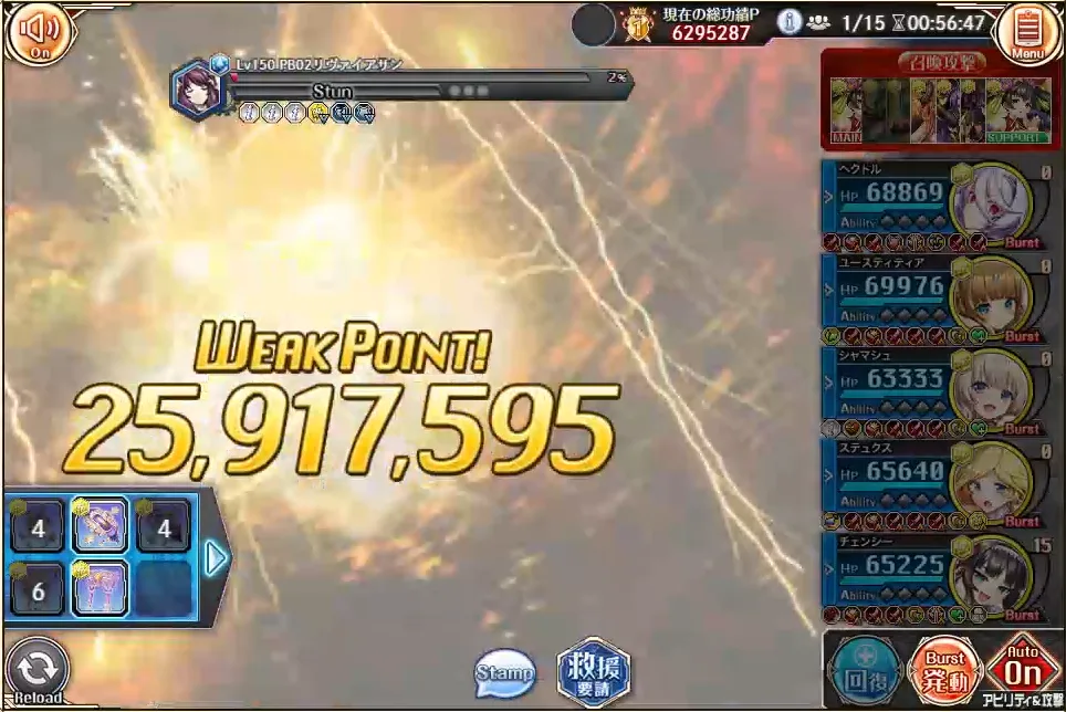 バーストストリークで2,500万ダメージ!おしい敵HPが2%残った!あと少しだったのに~
